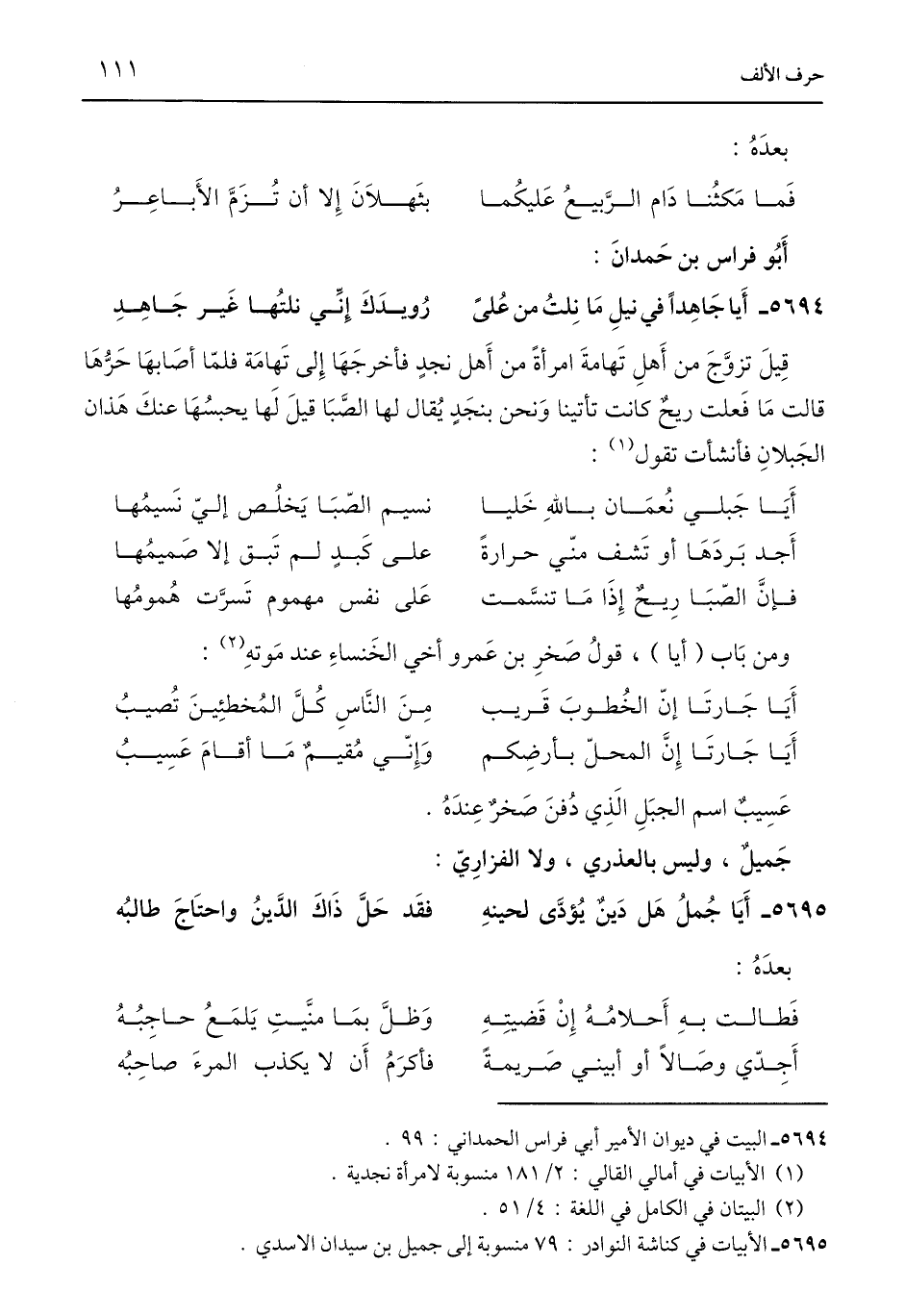 5694 - البيت في ديوان الأمير أبي فراس الحمداني: 99.