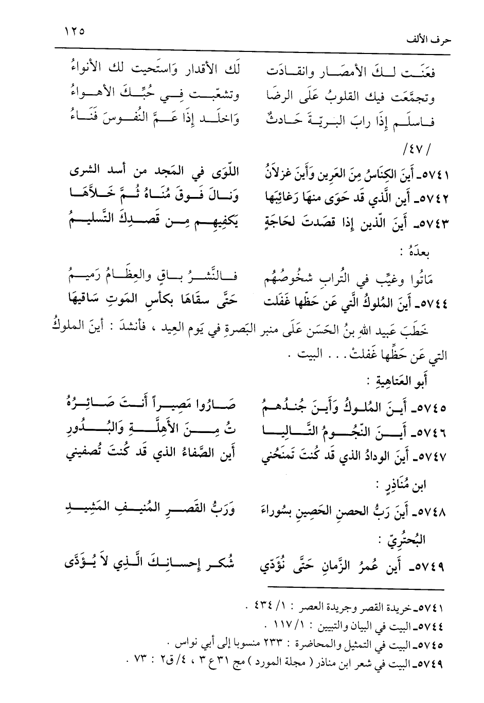 5745 - البيت في التمثيل والمحاضرة: 233 منسوبا إلى أبي نواس.