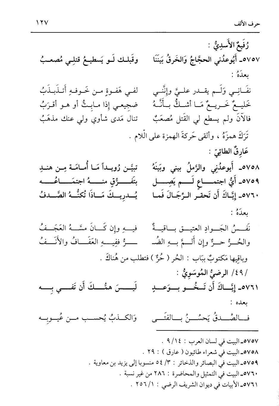 5761 - الأبيات في ديوان الشريف الرضي: 1/ 256.