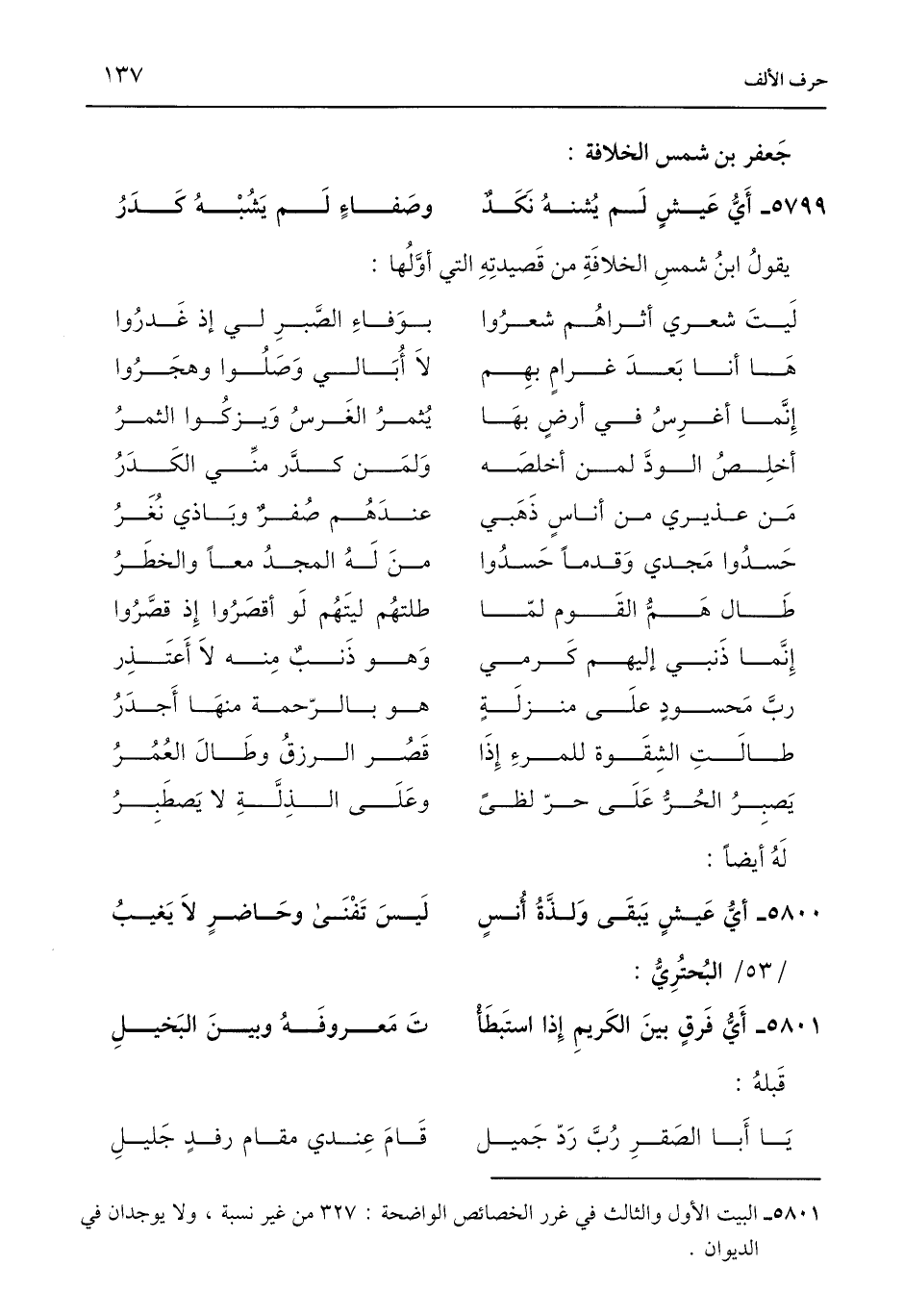 5801 - البيت الأول والثالث في غرر الخصائص الواضحة: 327 من غير نسبة، ولا يوجدان في الديوان.