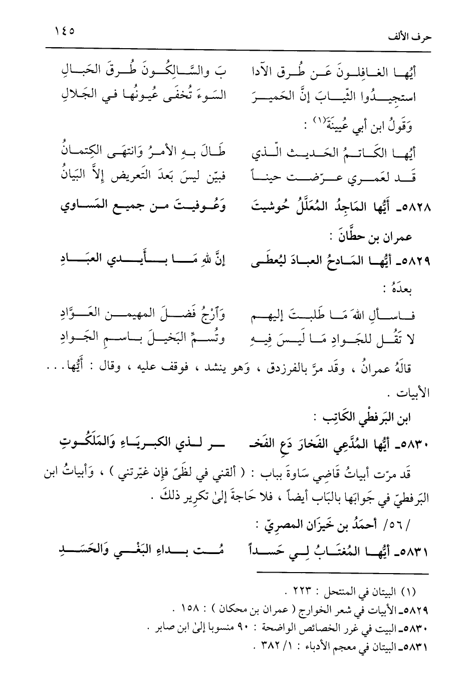 5829 - الأبيات في شعر الخوارج (عمران بن محكان): 158.