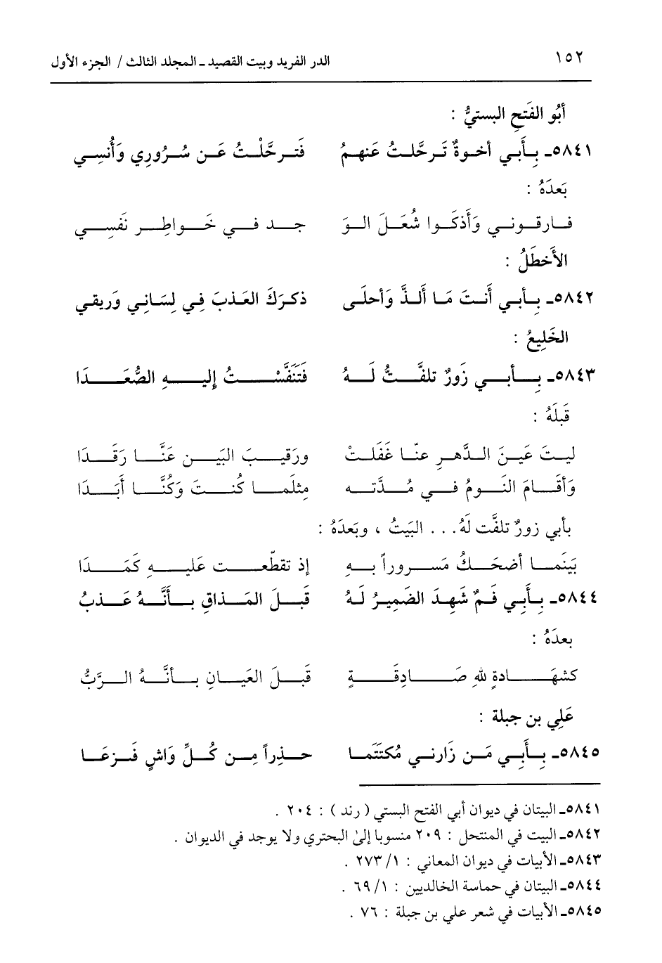 5842 - البيت في المنتحل: 209 منسوبا إلى البحتري ولا يوجد في الديوان.