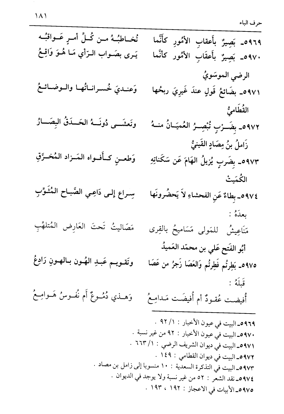 5973 - البيت في التذكرة السعدية: 10 منسوبا إلى زامل بن مصاد.