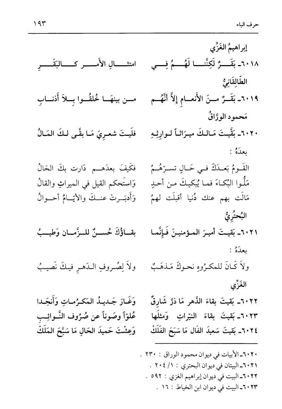 6021 - بَقيتَ أميرَ المؤمنينَ فَإِنَّما ... بقاؤُكَ حُسنٌ للزَّمان وَطيبُ