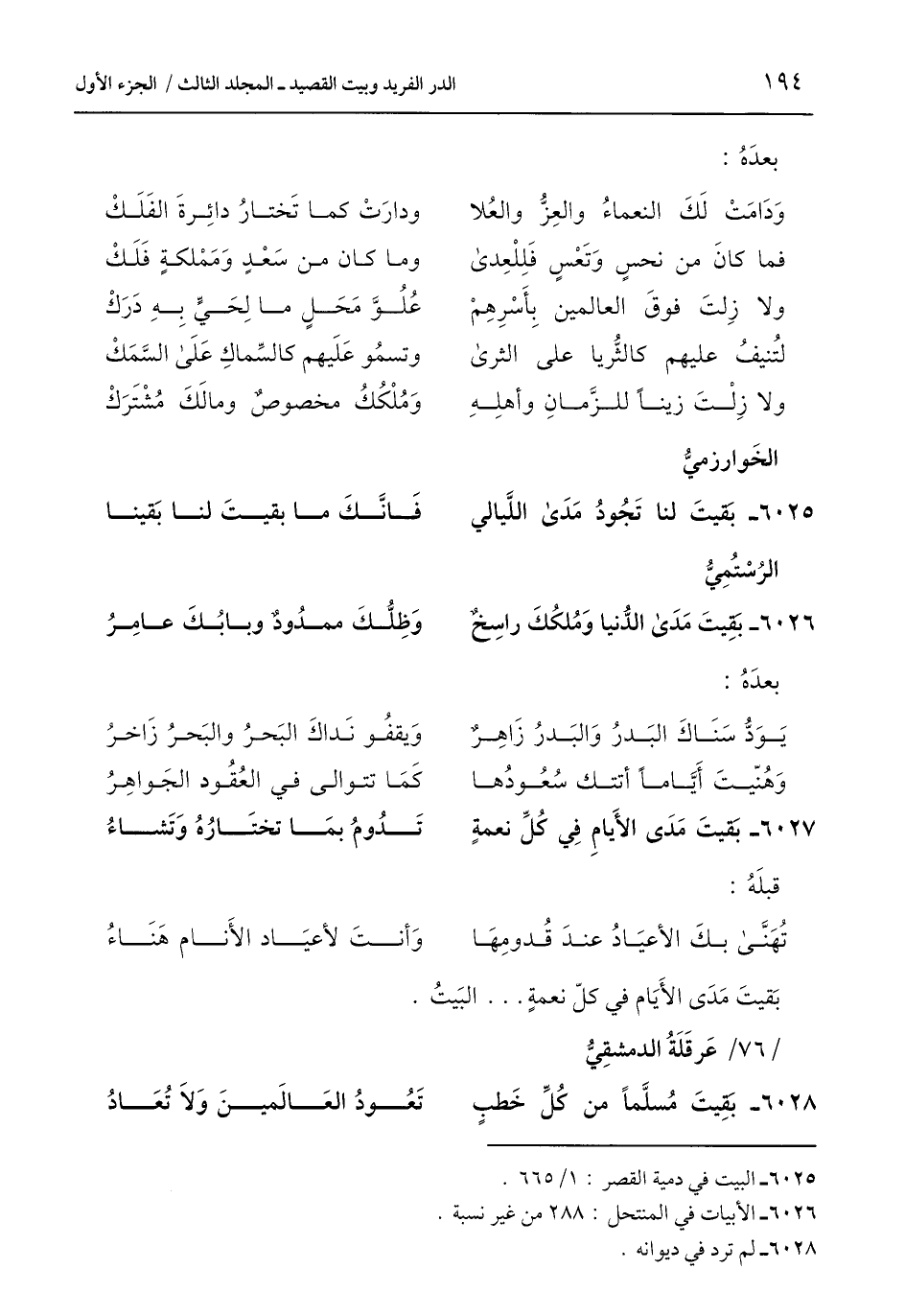 بَقيتَ مَدَى الأَيَام في كلّ نعمةٍ. . . البَيتُ.