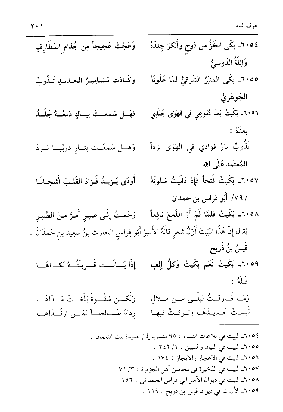 6054 - البيت في بلاغات النساء: 95 منسوبا إلى حميدة بنت النعمان.