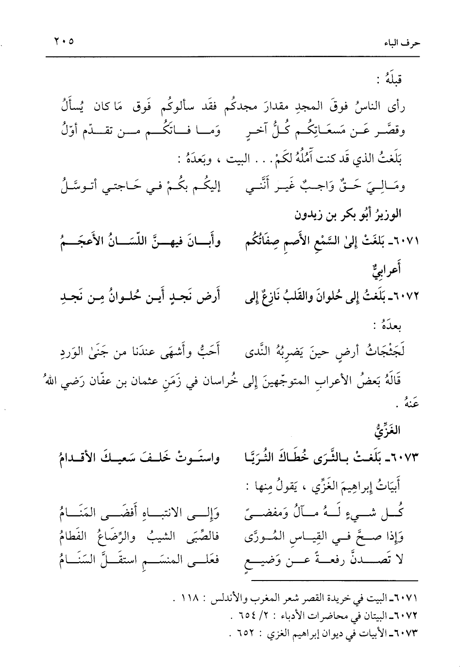 6073 - الأبيات في ديوان إبراهيم الغزي: 652.