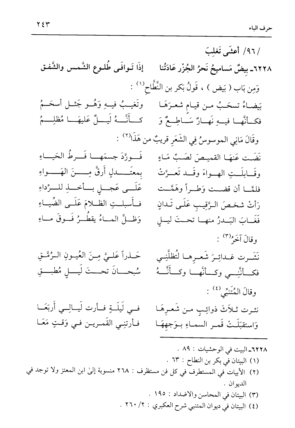 6228 - بِيضٌ مَساميحُ نَحرُ الجُزْر عَادَتُنا ... إِذَا تَوافَى طُلوع الشَّمس والشَّفق