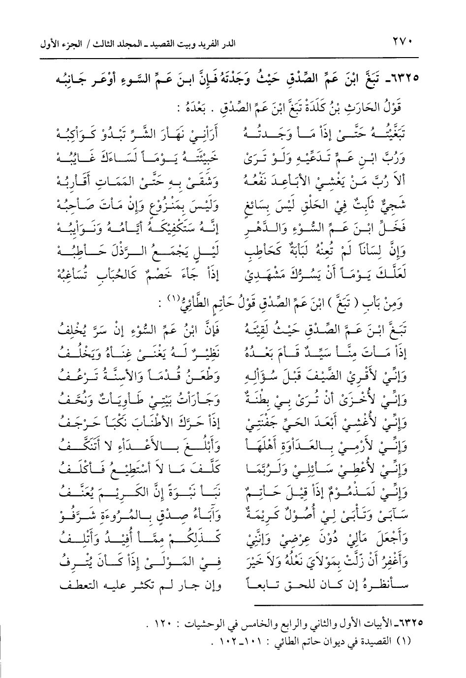 (¬1) القصيدة في ديوان حاتم الطائي: 101 - 102.