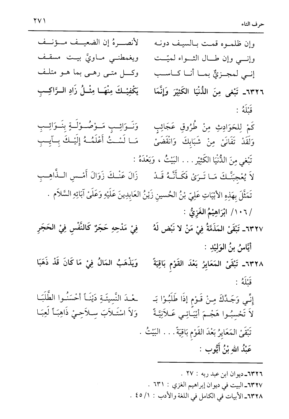 6328 - الأبيات في الكامل في اللغة والأدب: 1/ 45.
