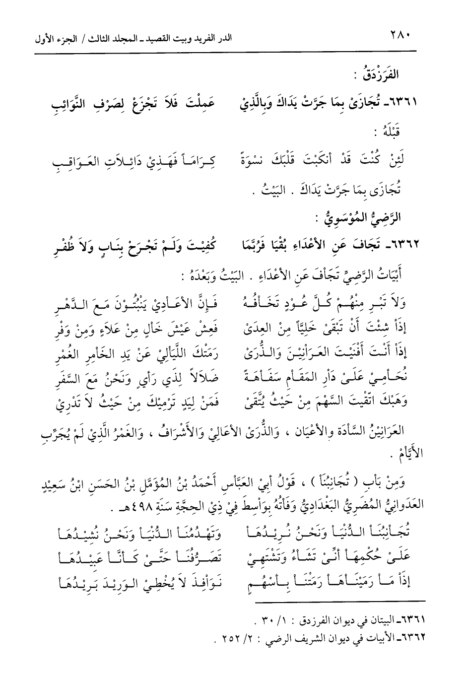 6362 - الأبيات في ديوان الشريف الرضي: 2/ 252.