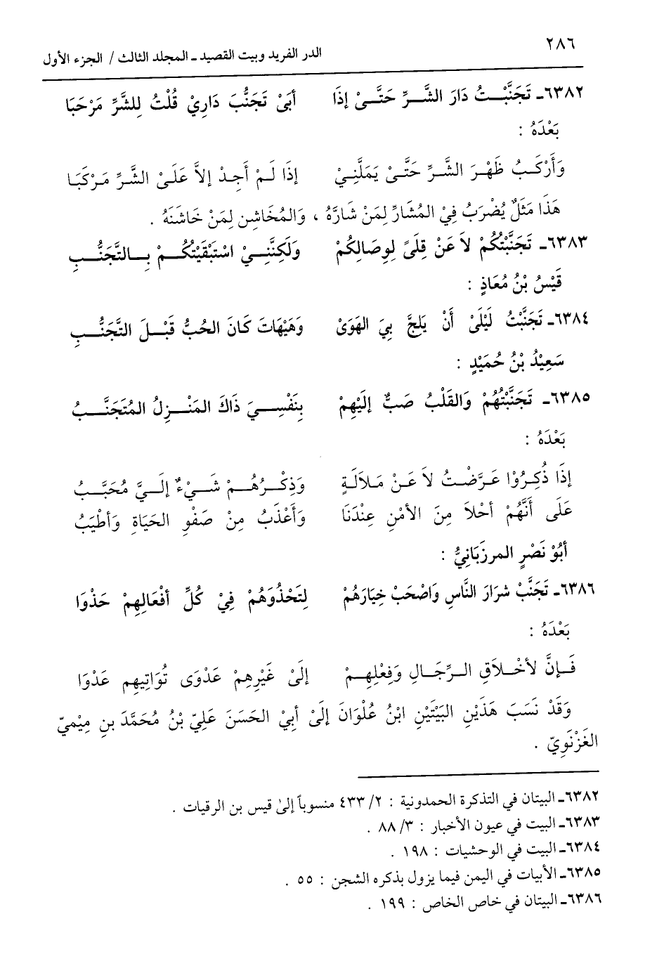 6383 - تَجَنَّبْتكمْ لَا عَنْ قِلًى لِوِصَالِكُمْ ... وَلَكِنَّنِيْ اسْتَبْقَيْتكمْ بالتَّجَنُّبِ