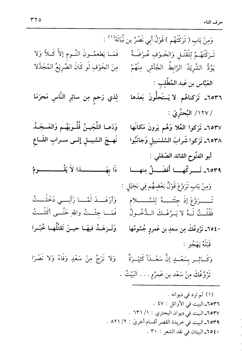 وَمِنْ بَابِ (تَرَكْتَهُم) قَوْلُ أَبِي نَصْرُ بن نُبَاتَة (¬1):