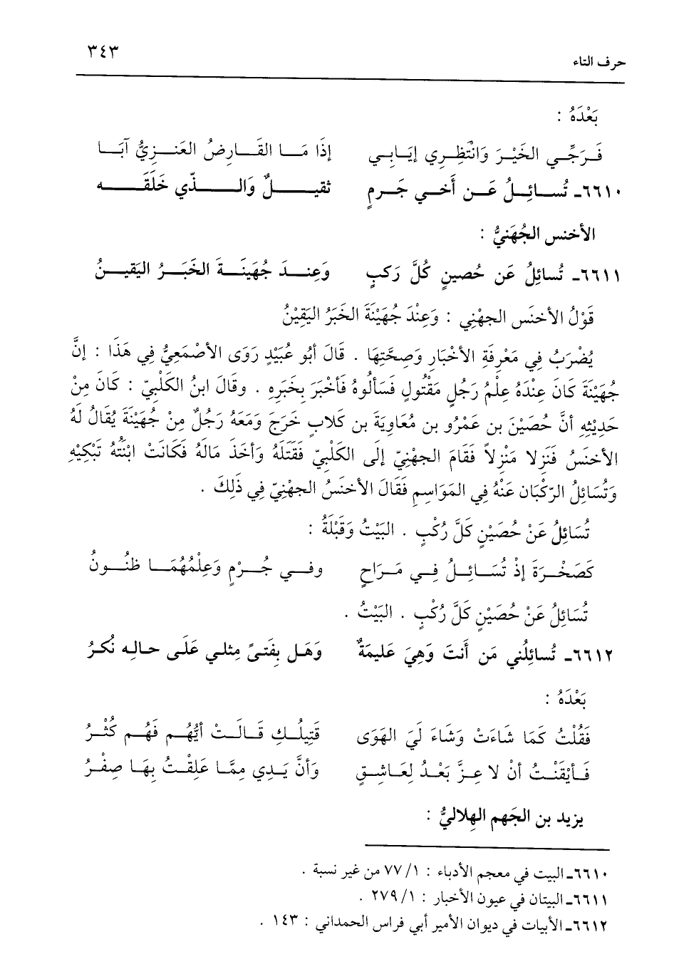 6612 - الأبيات في ديوان الأمير أبي فراس الحمداني: 143.