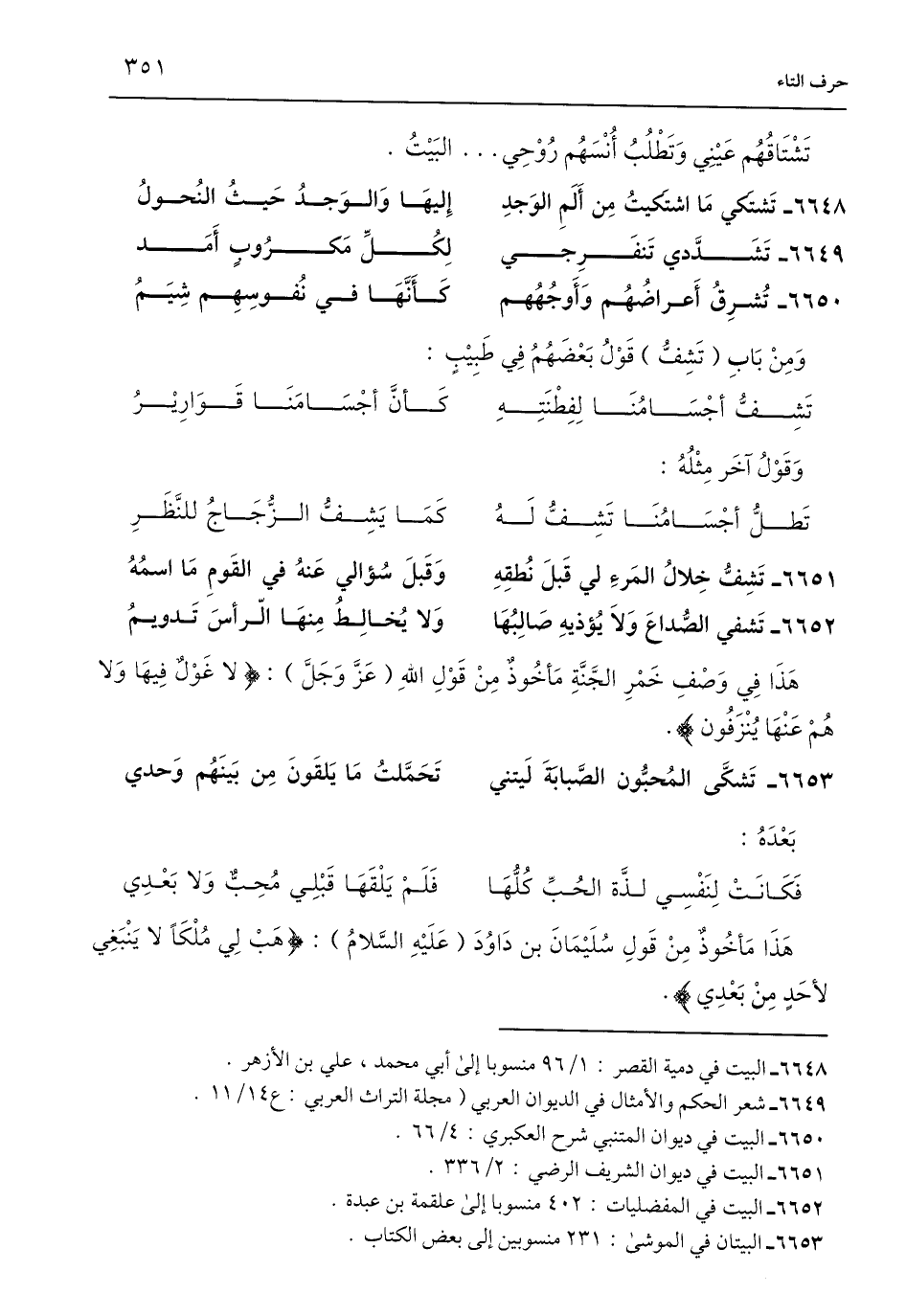 6653 - تَشكَّى المُحبُّون الصَّبابَةَ لَيتني ... تَحَمَّلتُ مَا يَلقَونَ مِن بَينَهُم وَحدي