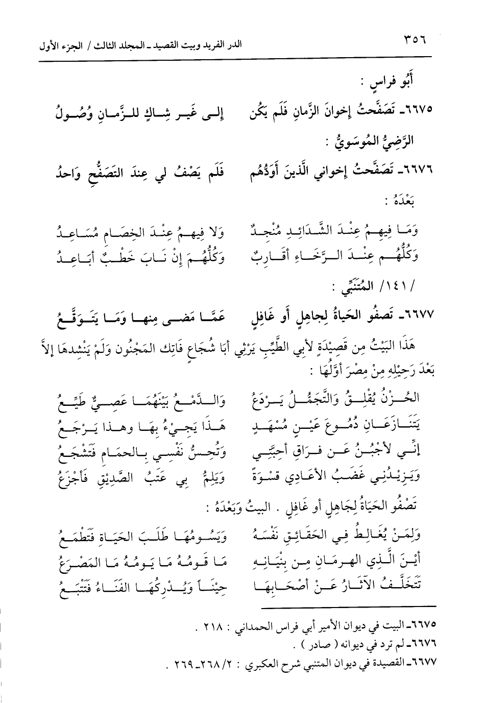 6675 - البيت في ديوان الأمير أبي فراس الحمداني: 218.