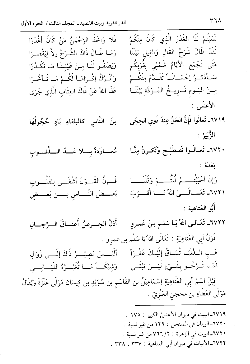 قَوْلُ أَبِي العَتَاهِيَةِ: تَعَالَى اللَّهُ يَا سَلْم بن عمرٍو.
