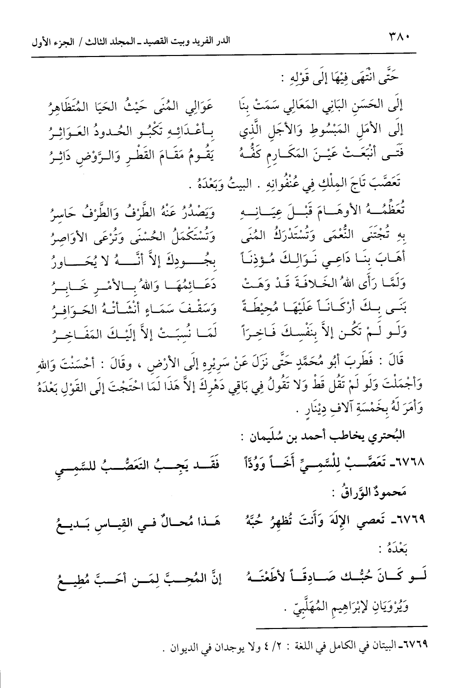 البُحتري يخاطب أحمد بن سُلَيمان:
