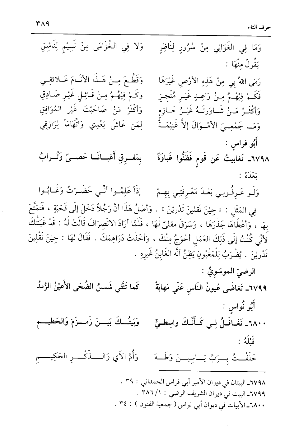 6798 - البيتان في ديوان الأمير أبي فراس الحمداني: 39.