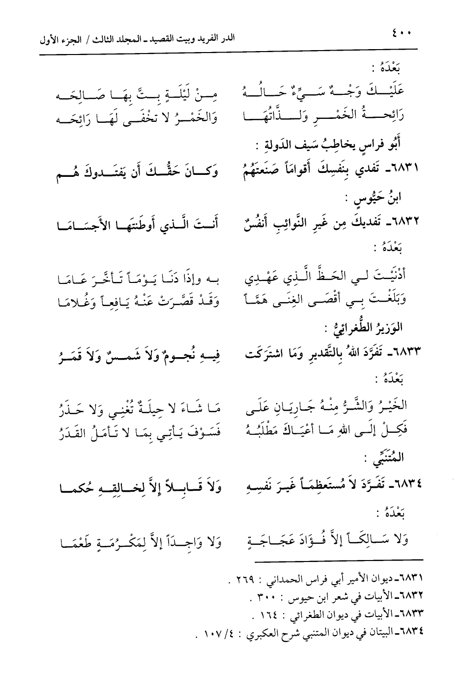 6831 - ديوان الأمير أبي فراس الحمداني: 269.