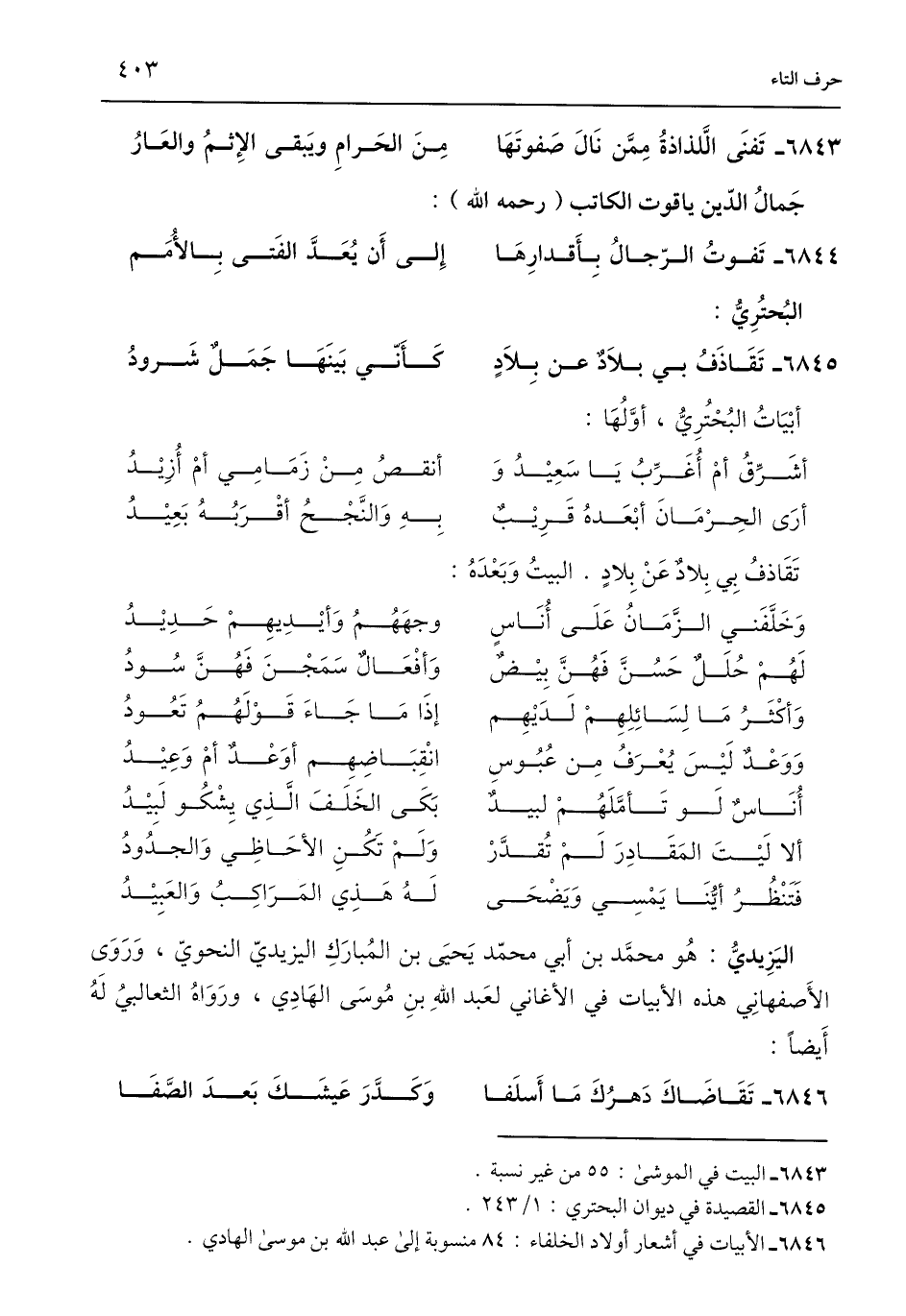 6846 - الأبيات في أشعار أولاد الخلفاء: 84 منسوبة إلى عبد اللَّه بن موسى الهادي.