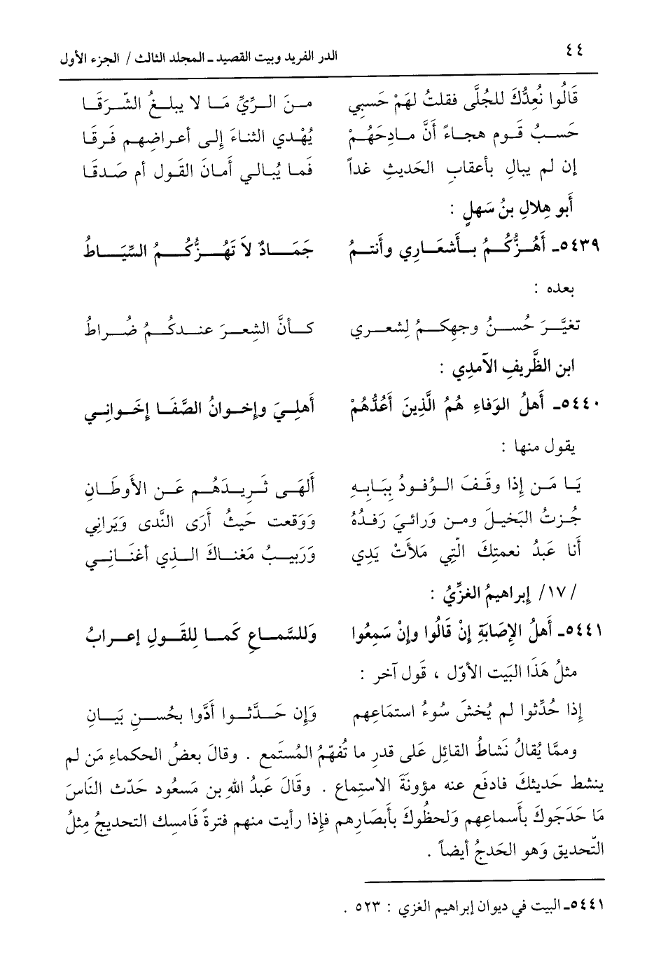 إِذَا حُدِّثوا لم يُخشَ سُوءُ استمَاعِهم ... وَإِن حَدَّثوا أَدَّوا بحُسنِ بَيانِ