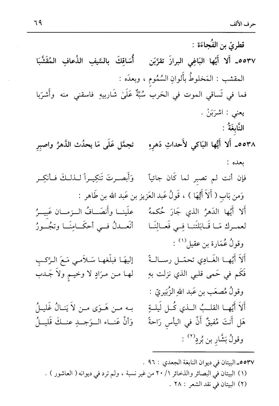5537 - أَلا أَيُّها البَاغِي البرازَ تقرَّبَن ... أُسَاقِكَ بالسَّيفِ الذُعافِ المُقَشَّبَا