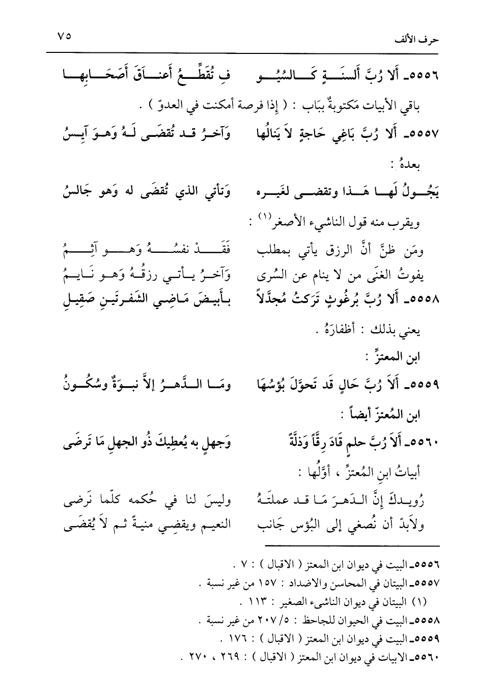 أبياتُ ابنِ المُعتزِّ، أوَّلُها: