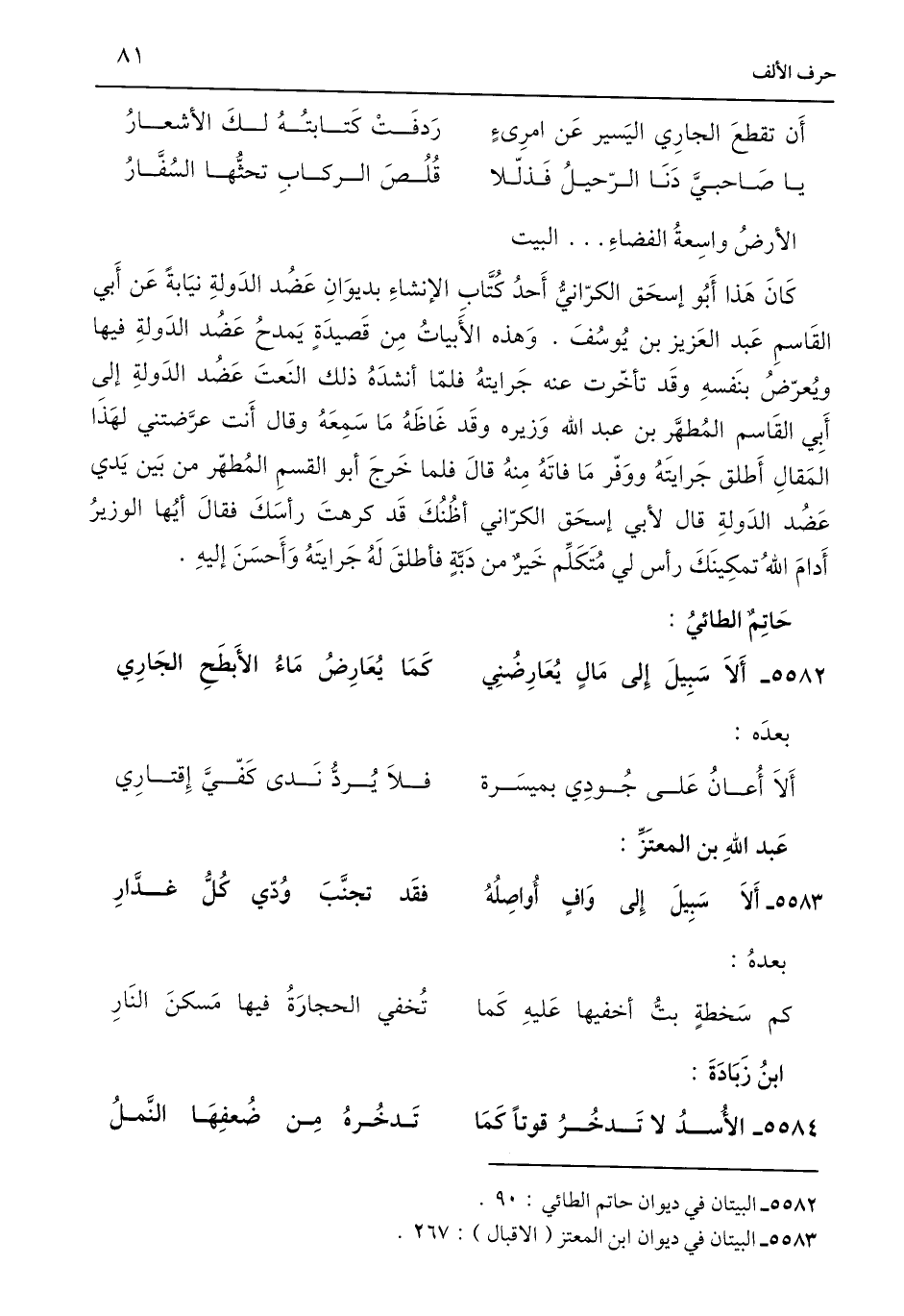 5583 - البيتان في ديوان ابن المعتز (الاقبال): 267.