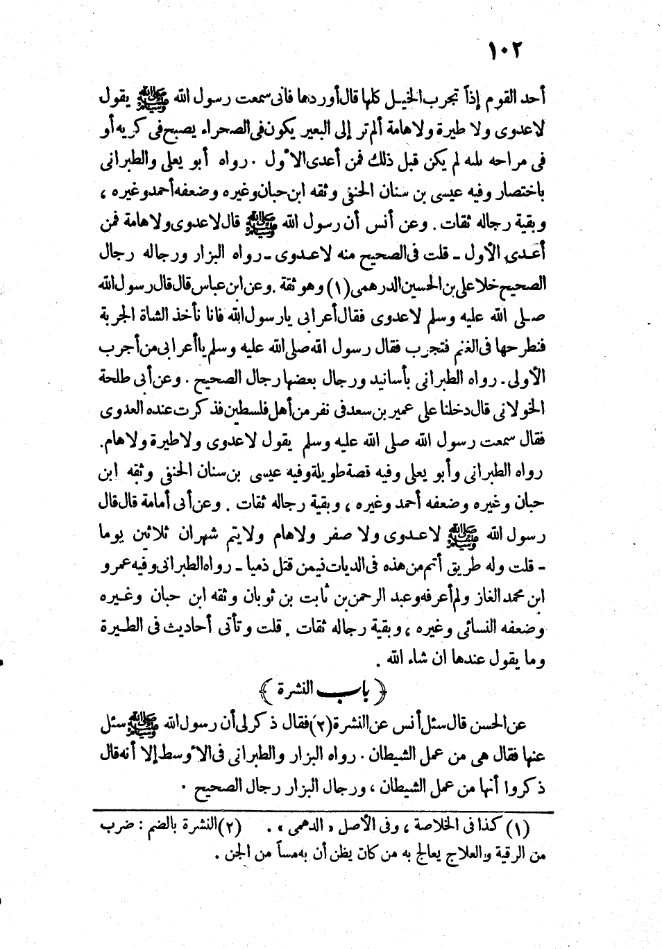 رَوَاهُ الْبَزَّارُ، وَالطَّبَرَانِيُّ فِي الْأَوْسَطِ، إِلَّا أَنَّهُ قَالَ: ذَكَرُوا أَنَّهَا مِنْ عَمَلِ الشَّيْطَانِ. وَرِجَالُ الْبَزَّارِ رِجَالُ الصَّحِيحِ.