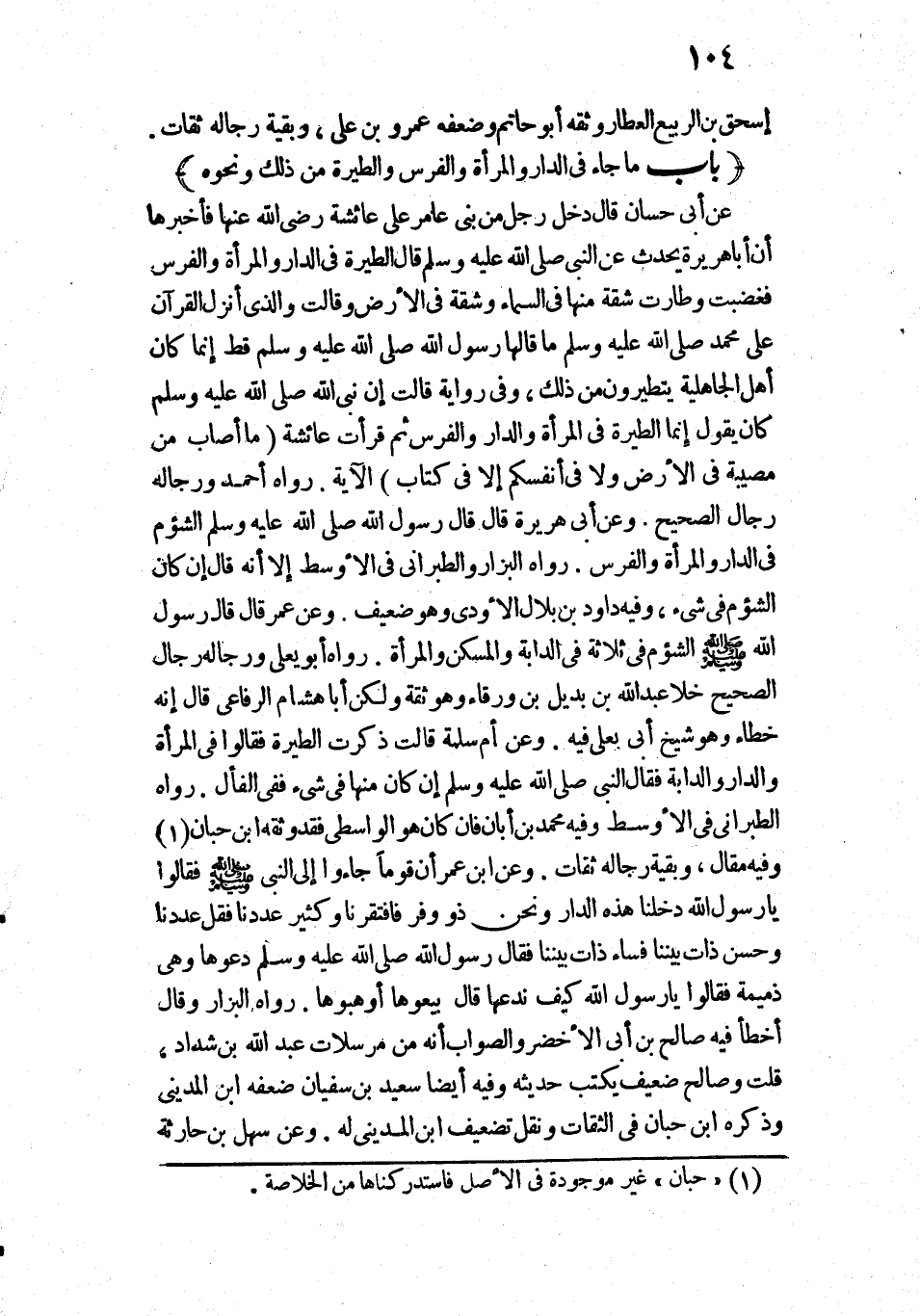 [بَابُ مَا جَاءَ فِي الدَّارِ وَالْمَرْأَةِ وَالْفَرَسِ وَالطِّيَرَةِ مِنْ ذَلِكَ وَنَحْوِهُ]