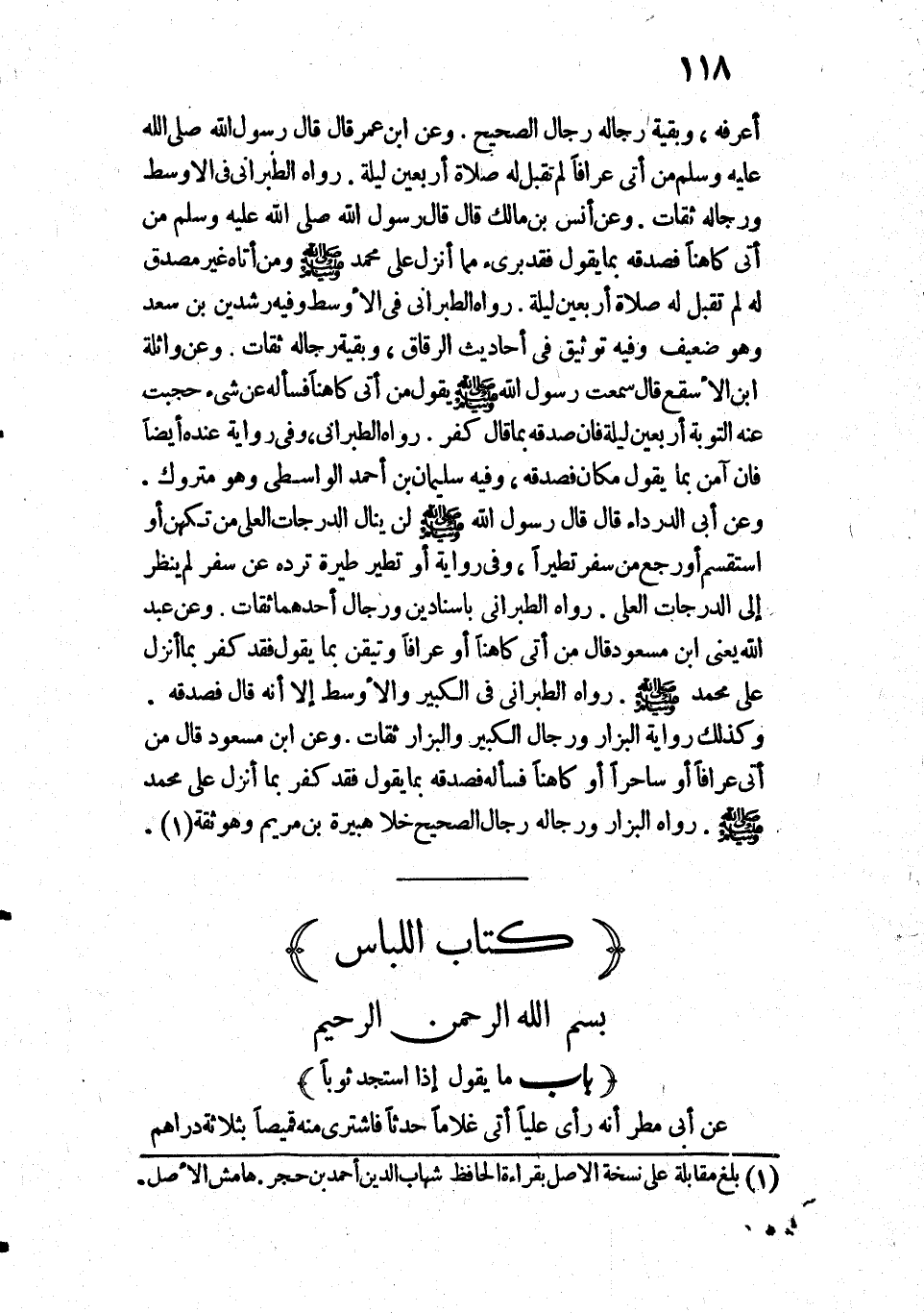 8484 - وَعَنِ ابْنِ عُمَرَ قَالَ: قَالَ رَسُولُ اللَّهِ - صَلَّى اللَّهُ عَلَيْهِ وَسَلَّمَ -: " «مَنْ أَتَى عَرَّافًا لَمْ تُقْبَلْ لَهُ صَلَاةٌ أَرْبَعِينَ لَيْلَةً» ".
