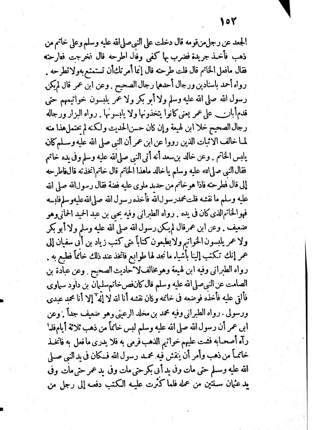رَوَاهُ الْبَزَّارُ، وَرِجَالُهُ رِجَالُ الصَّحِيحِ خَلَا ابْنَ لَهِيعَةَ، وَإِنْ كَانَ حَسَنَ الْحَدِيثَ، وَلَكِنَّهُ لَمْ يُحْتَمَلْ هَذَا مِنْهُ لَمَّا خَالَفَ الْأَثْبَاتَ الْذِينَ رَوَوْا عَنِ ابْنِ عُمَرَ «أَنَّ النَّبِيَّ - صَلَّى اللَّهُ عَلَيْهِ وَسَلَّمَ - كَانَ يَلْبَسُ الْخَاتَمَ».