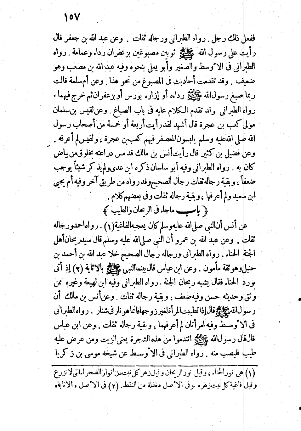 8764 - وَعَنِ ابْنِ عَبَّاسٍ قَالَ: «بَيْنَمَا النَّبِيُّ - صَلَّى اللَّهُ عَلَيْهِ وَسَلَّمَ - بِالْأُثَايَةِ إِذْ أُتِيَ بِوَرْدِ الْحِنَّاءِ، فَقَالَ: " يُشْبِهُ رَيْحَانَ الْجَنَّةِ» ".