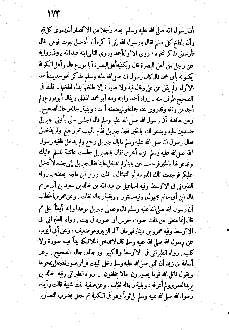 8890 - وَعَنْ عَائِشَةَ «أَنَّ رَسُولَ اللَّهِ - صَلَّى اللَّهُ عَلَيْهِ وَسَلَّمَ - قَالَ: " اجْلِسِي حَتَّى يَأْتِيَنِي جِبْرِيلُ فَتُسَلِّمِينَ عَلَيْهِ، وَيَدْعُوَ لَكِ بِالْخَيْرِ " فَجَاءَ جِبْرِيلُ، فَقَامَ بِالْبَابِ، ثُمَّ رَجَعَ وَلَمْ يَدْخُلْ، فَقَالَ رَسُولُ اللَّهِ - صَلَّى اللَّهُ عَلَيْهِ وَسَلَّمَ -: " مَا بَالُ جِبْرِيلَ رَجَعَ وَلَمْ يَدْخُلْ؟ " فَلَقِيَهُ رَسُولُ اللَّهِ - صَلَّى اللَّهُ عَلَيْهِ وَسَلَّمَ - نَزْلَةً أُخْرَى فَقَالَ: " يَا جِبْرِيلُ جَلَسَتْ عَائِشَةُ لِتُسَلِّمَ عَلَيْكَ، وَتَدْعُوَ لَهَا بِالْخَيْرِ فَرَجَعَتْ عَنْ بَابِنَا وَلَمْ تَدْخُلْ عَلَيْنَا؟ ". فَقَالَ جِبْرِيلُ: إِنِّي جِئْتُ لِأَدْخُلَ عَلَيْكُمْ فَوَجَدْتُ تِلْكَ الدُّوَيْبَّةَ أَوِ التِّمْثَالَ».