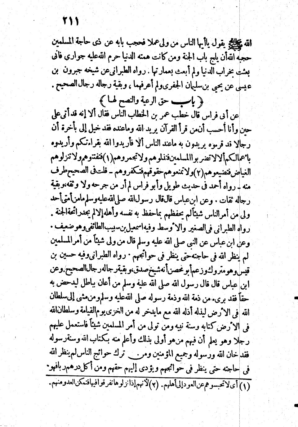 9070 - وَعَنِ ابْنِ عَبَّاسٍ عَنِ النَّبِيِّ - صَلَّى اللَّهُ عَلَيْهِ وَسَلَّمَ - قَالَ: " «مَنْ وَلِيَ شَيْئًا مَنْ أَمْرِ الْمُسْلِمِينَ لَمْ يَنْظُرِ اللَّهُ فِي حَاجَتِهِ حَتَّى يَنْظُرَ فِي حَوَائِجِهِمْ» ".