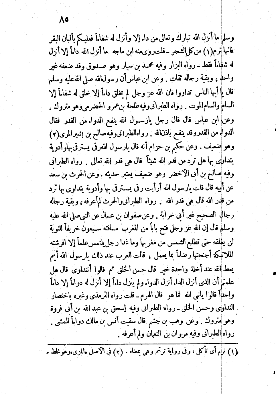" «يَا أَيُّهَا النَّاسُ، تَدَاوُوا، فَإِنَّ اللَّهَ - عَزَّ وَجَلَّ - لَمْ يَخْلُقْ دَاءً إِلَّا خَلَقَ لَهُ شِفَاءً إِلَّا السَّامَ، وَالسَّامُ: الْمَوْتُ» ".