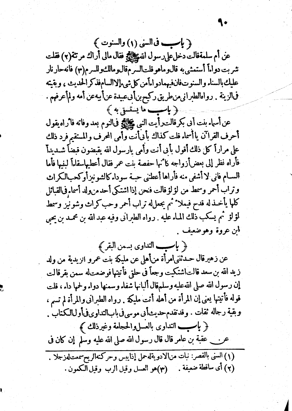 8310 - عَنْ أَسْمَاءَ بِنْتِ أَبِي بَكْرٍ قَالَتْ: رَأَيْتُ النَّبِيَّ - صَلَّى اللَّهُ عَلَيْهِ وَسَلَّمَ - فِي النَّوْمِ بَعْدَ وَفَاتِهِ، فَأَرَاهُ يَقُولُ: أَحُرِّفَ الْقُرْآنُ يَا أَسْمَاءُ؟ قُلْتُ: كَذَاكَ بِأَبِي أَنْتَ وَأُمِّي الْمُحَرِّفُ وَالْمُسْتَقِيمُ، فَرَدَ ذَلِكَ عَلِيَّ مِرَارًا، كُلُّ ذَلِكَ أَقُولُ بِأَبِي أَنْتَ وَأُمِّي الْمُحَرِّفُ وَالْمُسْتَقِيمُ، ثُمَّ قَالَ لِي: كَيْفَ بَنُوكِ؟ قُلْتُ: يَا رَسُولَ اللَّهِ يَقْبِضُونَ قَبْضًا شَدِيدًا، فَأَرَاهُ نَظَرَ إِلَى بَعْضِ أَزْوَاجِهِ كَأَنَّهَا حَفْصَةُ بِنْتُ عُمَرَ فَقَالَ: أَعْطِيهَا سِقَاءً لَبَنِيهَا، فَأَمَّا السَّامُ فَإِنِّي لَا أَشْفِي مِنْهُ، فَأَرَاهَا أَعْطَتْنِي حَبَّةً سَوْدَاءَ كَالشُّونِيزِ، أَوْ كَحَبِّ الْكُرَّاثِ، وَتُرَابٍ أَحْمَرَ، وَسِمْطٍ مِنْ لُؤْلُؤٍ، قَالَتْ: فَنَحْنُ إِذَا اشْتَكَى أَحَدٌ مِنْ وَلَدِ أَسْمَاءَ فِي الْقَبَائِلِ كُلِّهَا يَأْخَذُ لَهُ قَدَحٌ فَيُمْلَأُ، ثُمَّ يُجْعَلُ لَهُ تُرَابٌ أَحْمَرُ، وَحَبُّ كَرَاثٍ، وَشُونِيزٍ، وَسِمْطِ لُؤْلُؤٍ، ثُمَّ يُسْكَبُ ذَلِكَ الْمَاءُ عَلَيْهِ.