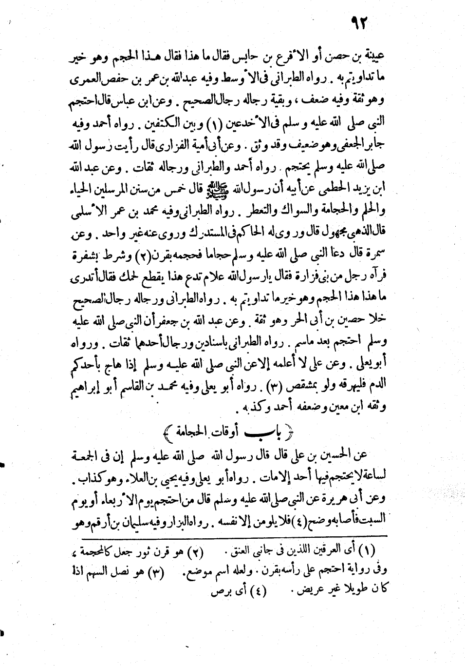 عُيَيْنَةُ بْنُ حِصْنٍ أَوِ الْأَقْرَعُ بْنُ حَابِسٍ فَقَالَ: مَا هَذَا؟ فَقَالَ: " هَذَا الْحَجْمُ وَهُوَ خَيْرُ مَا تَدَاوَيْتُمْ بِهِ» ".