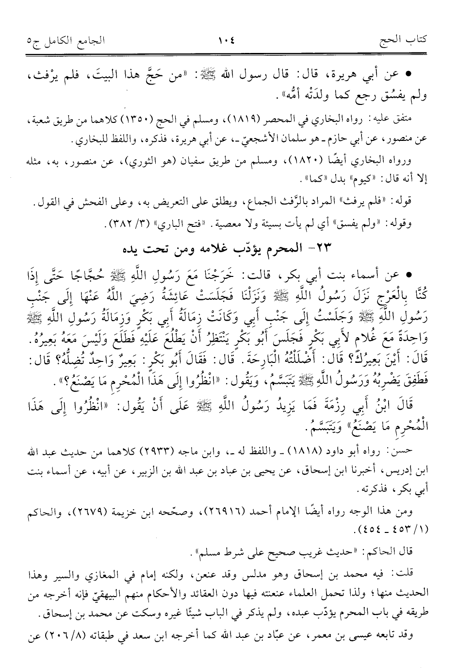 كتاب الجامع الكامل في الحديث الصحيح الشامل المرتب على أبواب الفقه (اسم الجزء: 5)