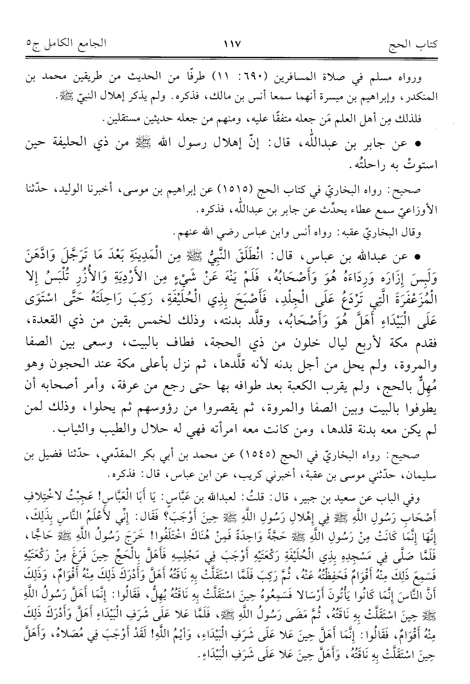 • عن جابر بن عبد الله، قال: إنّ إهلال رسول الله - صلى الله عليه وسلم - من ذي الحليفة حين استوتْ به راحلتُه.