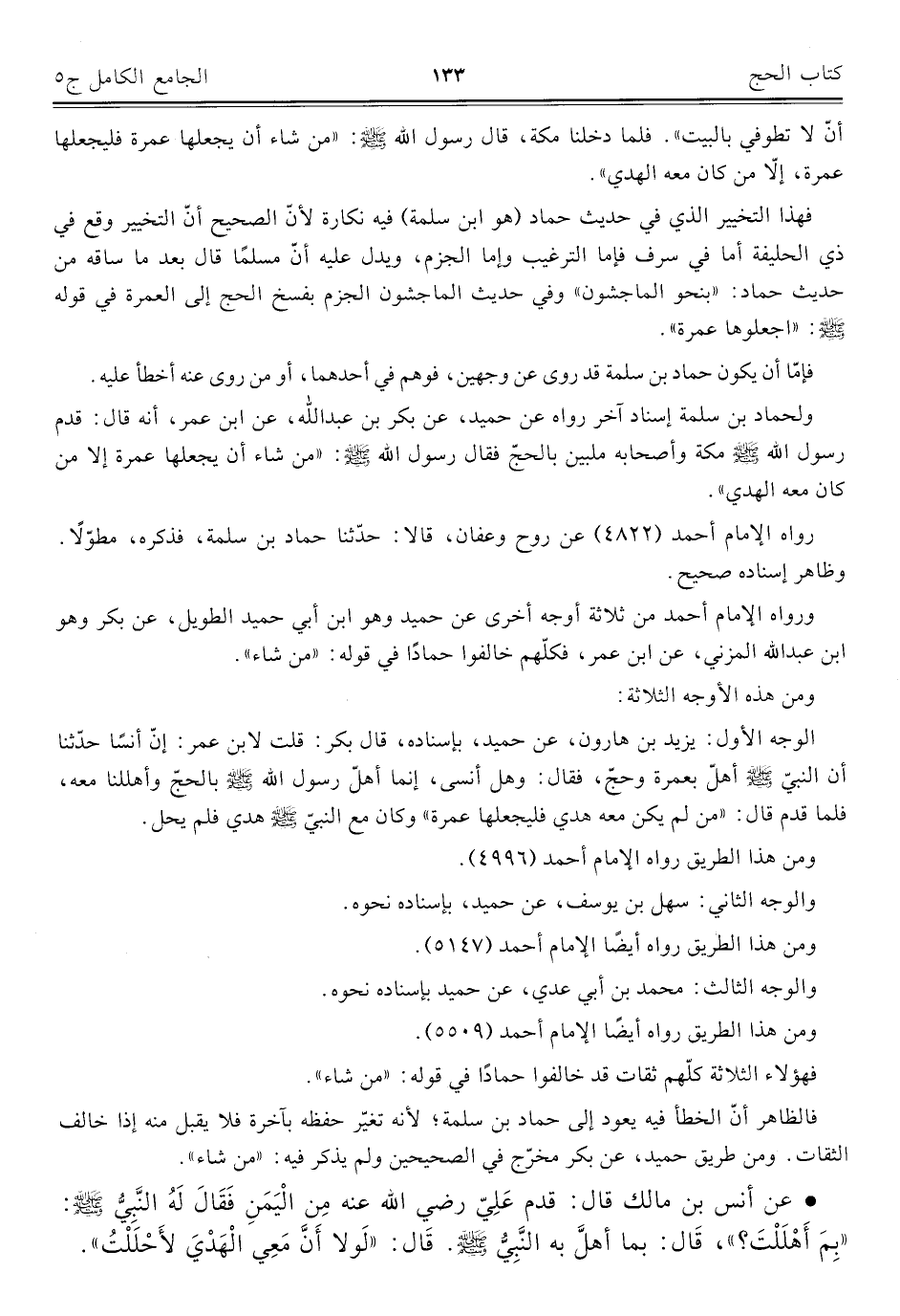 كتاب الجامع الكامل في الحديث الصحيح الشامل المرتب على أبواب الفقه (اسم الجزء: 5)