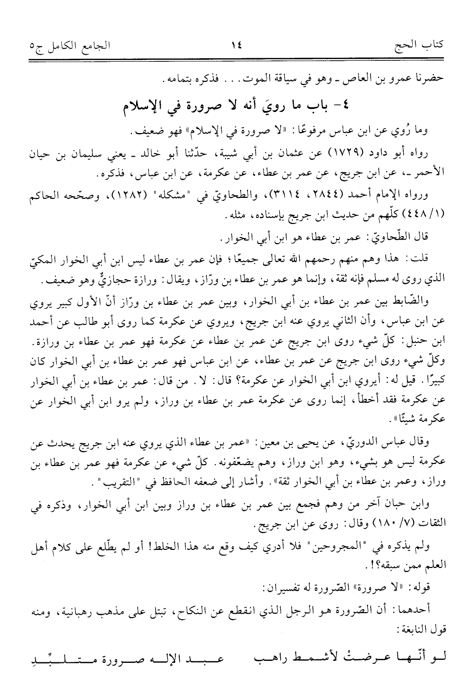 ٤ - باب ما رويَ أنه لا صرورة في الإسلام