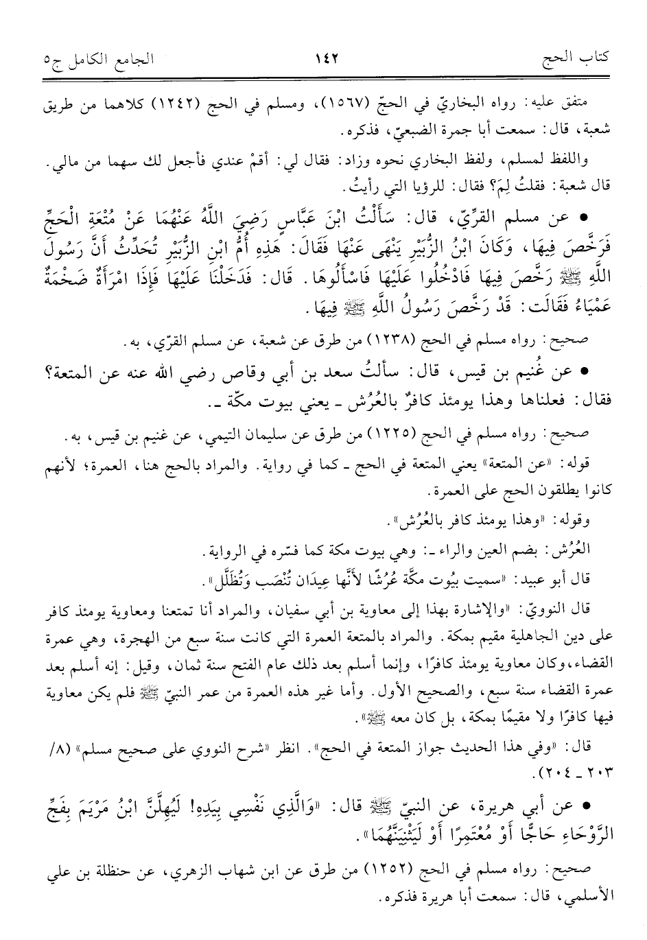 • عن أبي هريرة، عن النبيّ - صلى الله عليه وسلم - قال: "وَالَّذِي نَفْسِي بِيَدِهِ! لَيُهِلَّنَّ ابْنُ مَرْيَمَ بِفَجِّ الرَّوْحَاءِ حَاجًّا أَوْ مُعْتَمِرًا أَوْ لَيَثْنِيَنَّهُمَا".