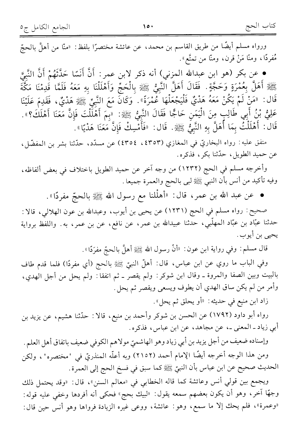 • عن عبد الله بن عمر، قال: "أهلْلنا مع رسول الله - صلى الله عليه وسلم - بالحجّ مفردًا".