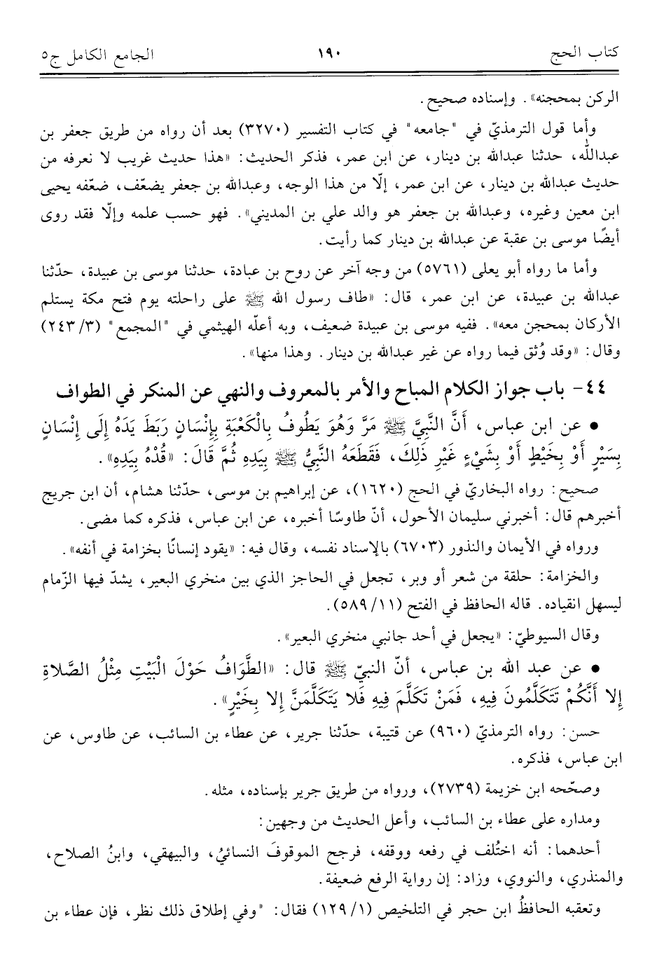 ٤٤ - باب جواز الكلام المباح والأمر بالمعروف والنهي عن المنكر في الطواف