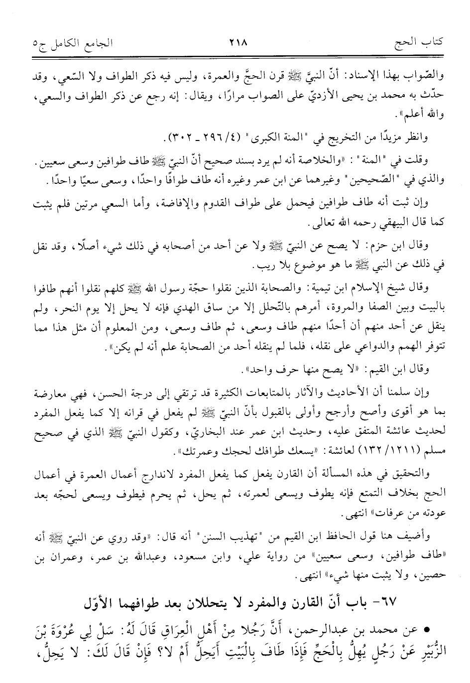 ٦٧ - باب أنّ القارن والمفرد لا يتحللان بعد طوافهما الأوّل