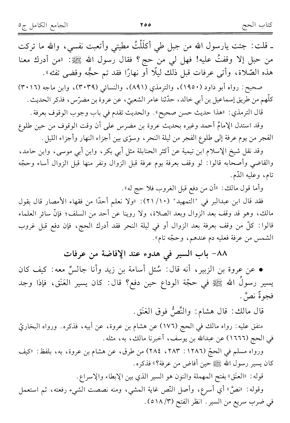 قال الترمذي: "هذا حديث حسن صحيح". والحديث تقدم في باب وجوب الوقوف بعرفة.