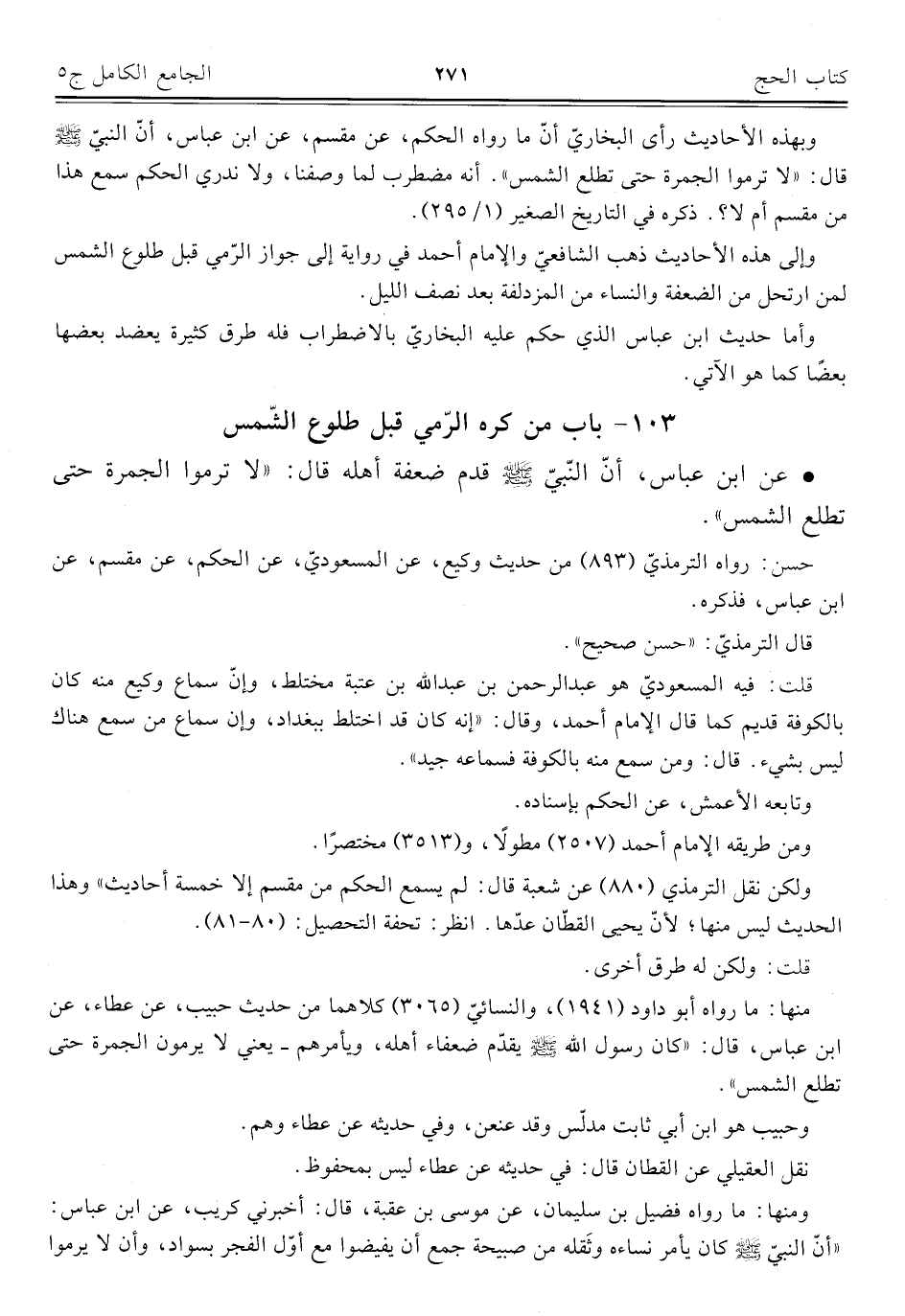 كتاب الجامع الكامل في الحديث الصحيح الشامل المرتب على أبواب الفقه (اسم الجزء: 5)