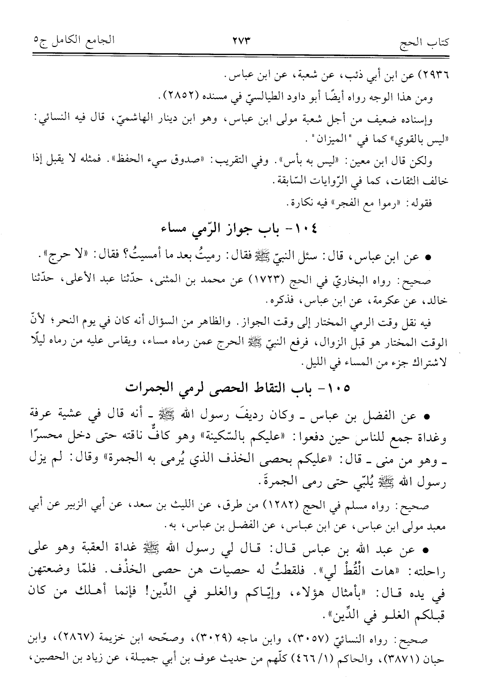 كتاب الجامع الكامل في الحديث الصحيح الشامل المرتب على أبواب الفقه (اسم الجزء: 5)